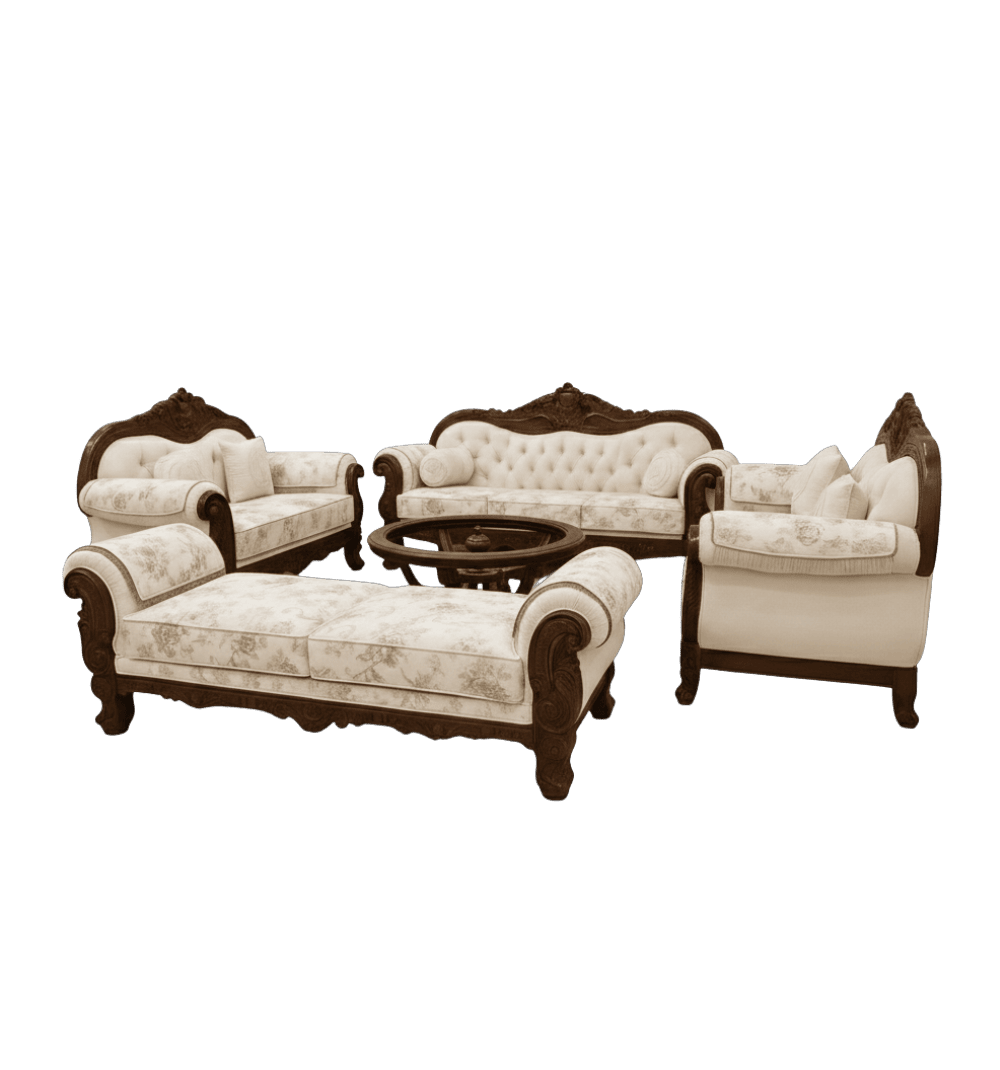 Premium sofa set crafted with solid wood frame and high-density cushioning.